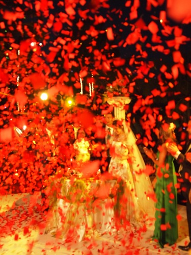 の瞬間に、赤い紙吹雪が舞い上がって、きれいね〜!