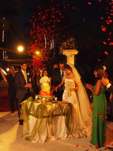 さて、新郎新婦が入場しての、ケーキカットである。が、「ピサの斜塔」と化したケーキが、今にも崩れ落ちそうで、気が気ではなかったわたし。早いところ、カットしてくれ。