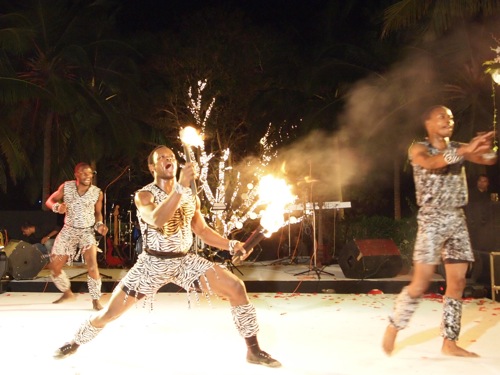 自分たちでやるだけならまだしも、観客にもやらせるところがすごい。これが日本なら「消防法」だのなんだので規制され、絶対にあり得ない芸である。