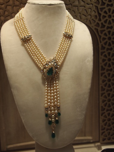 ごちゃごちゃ重たいデザインが多い中、気に入ったのは、タヒチ産の黒真珠とダイヤモンドのネックレス。いきなり、着用させていただけばもう、すてき! シルエットの美しいシンプルな黒いドレスなど着るとよさそう。