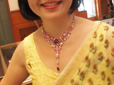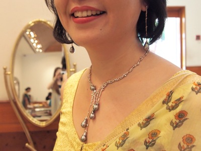 昨日、バンガロール在住日本人女性による『さくら会』からの集いが、バンガロール拠点のジュエリーショップで開催された。その店でプレゼンテーションを受けた後、売り場で商品を眺める。