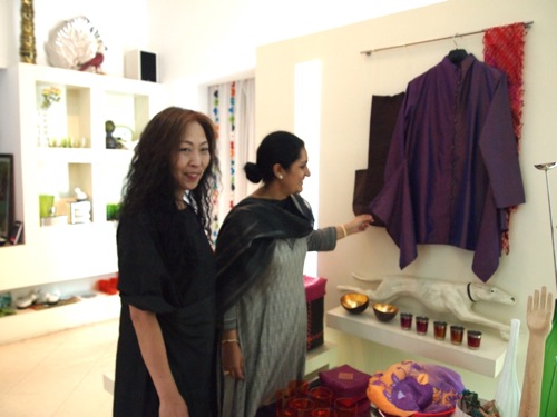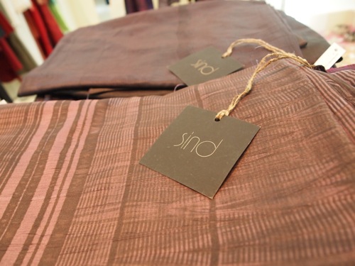 SIND(シンド)というのが、原口さんの作品のブランド名。今日は店内が込み合っていたこともあり、わたしは試着をしなかったが、何人かのインド人女性たちが着ているのを見て驚いた。