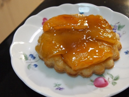 右上写真は、味見用に焼いた小型タルトタタン。味見用なだけに、煮崩れたリンゴを使用。焼きたてをアルヴィンドに味見してもらったところ、「ラデュレよりもおいしい!」と、たいそう評判がよかった。