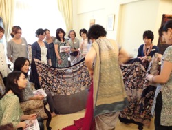 いつもの如く、資料を用意し、自分が持っているサリーを参考資料としながら、それぞれの土地、それぞれの職人の手なるサリーを、一枚ずつ、見てもらう。
