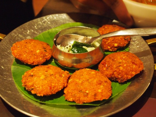 わたしはチャパティやナンのように、普通にちぎってたべていたのだが、隣のテーブルの女性たちが、これを器にして、中に汁気のある料理(カレー風)を入れて、外側からじわじわ食べていた。