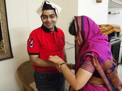 これは土曜の夜、義姉スジャータ宅にて。昨夜は「ラクシャー・バンダン」という祝祭日であった。
