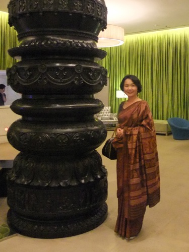 オリッサの有名な寺院がモチーフとなっているこのサリーを着ていたことを、喜んでいらした。