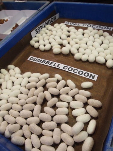 繭にもさまざまな種類、質感があるということは、去年も記したので詳細は割愛するが、写真だけ、改めて。
