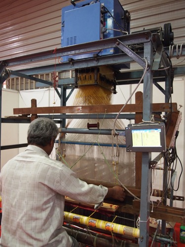 こちらは、コンピュータでプログラムされているという織機。どのあたりがどうコンピュータなのか、見ているだけでは複雑すぎてわからない。