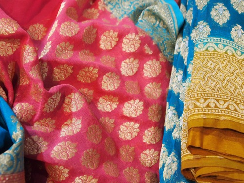 バナラシ・シルクは、厚めで光沢のある「博多織っぽい」ものもある。多少厚さがあっても、柄が小さく上品なものが少なくないので、日本人に合わせやすい。