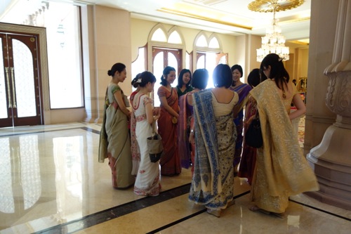 自分のサリーを見立てるよりも、むしろ人にアドヴァイスをして、それがとても似合っていて、本人も周りの人も盛り上がる感じが、とても楽しい。洋服では決して選ばないような色柄を、サリーでは選べるのもまた面白い。