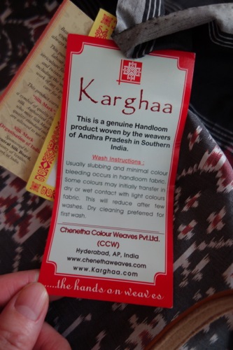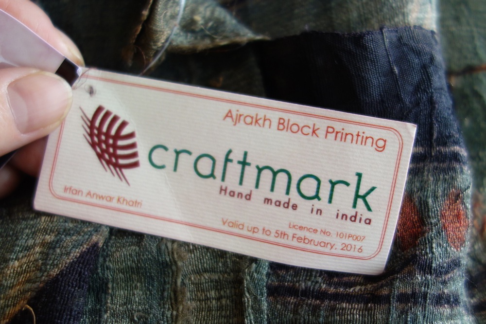 手づくりであることを保証するクラフトマークもついている。こうして、インドの伝統的な手工芸は、静かに保護されていると思うと、廃れつつあるとはいえ、少し安心する。