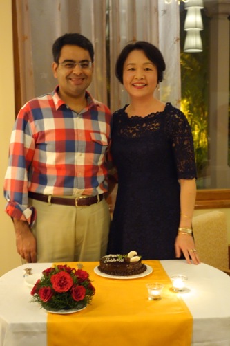 七夕、夫との19周年記念日は、オベロイホテルのチャイニーズへ。サリーを着て行こうと思っていたのに、結局ぎりぎりで面倒になり、洋服にしてしまった。