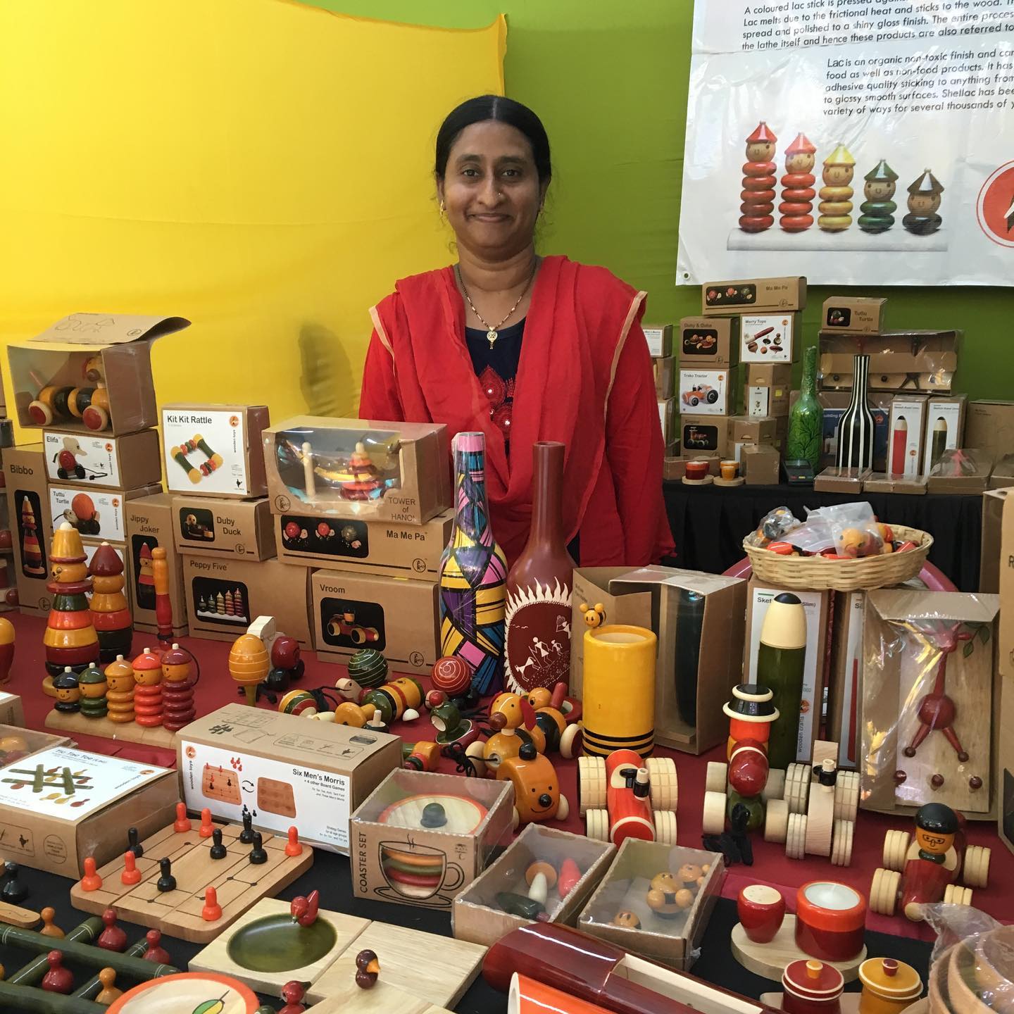 グジャラート、ラジャスタン、ベンガル、カシミール、オリッサ、マドヤ・プラデーシュ、アンドラ・プラデーシュ……。インド各地の州から訪れる職人やアーティスト、その親類縁者、あるいは工房の経営者が自ら訪れ、商品を販売する。