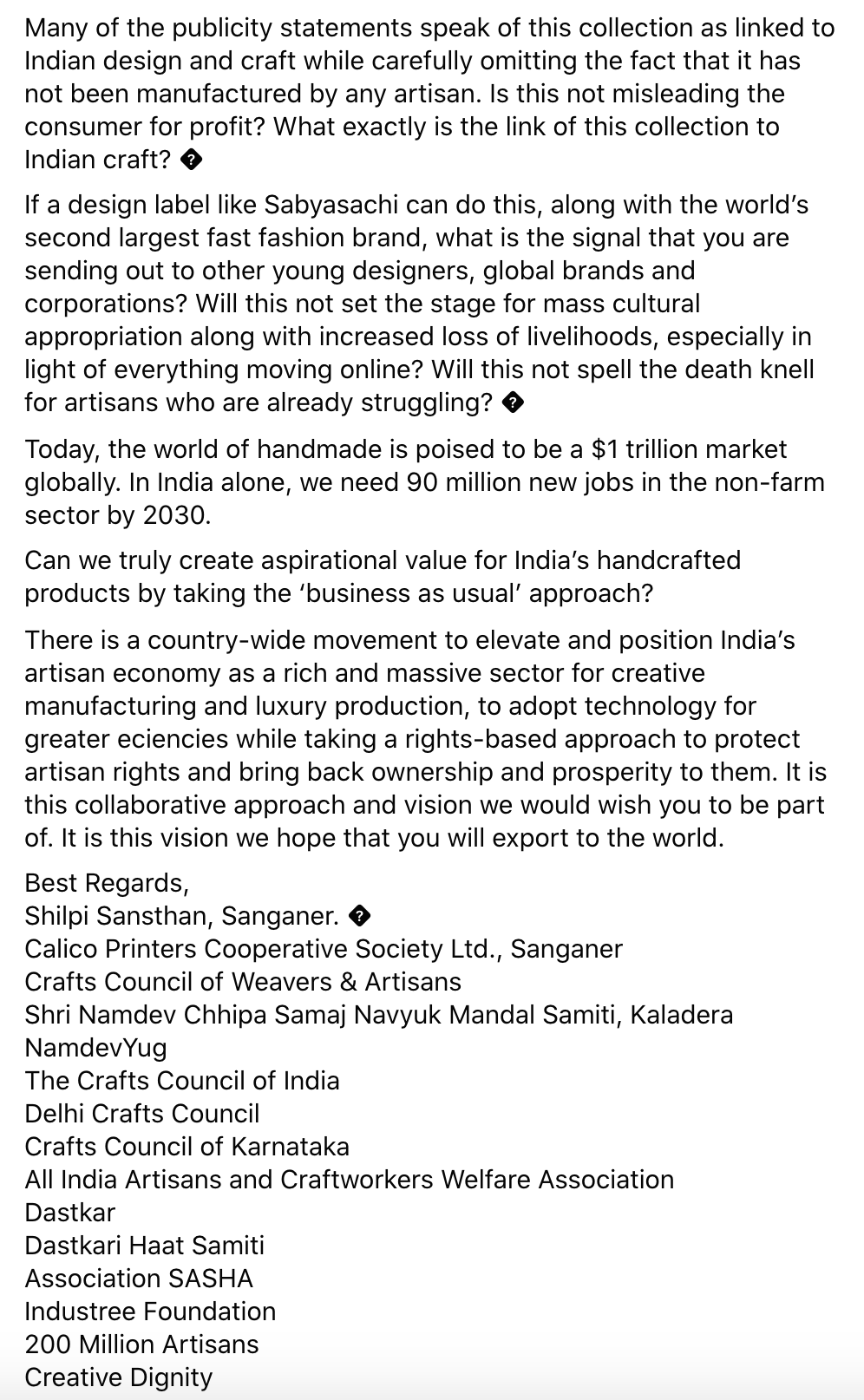 ➡︎https://www.thehindu.com/society/sabyasachi-hm-letter-artisans-laila-tyabji-textile/article35960214.ece