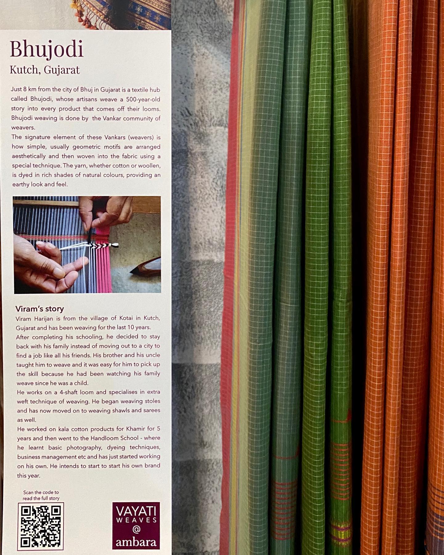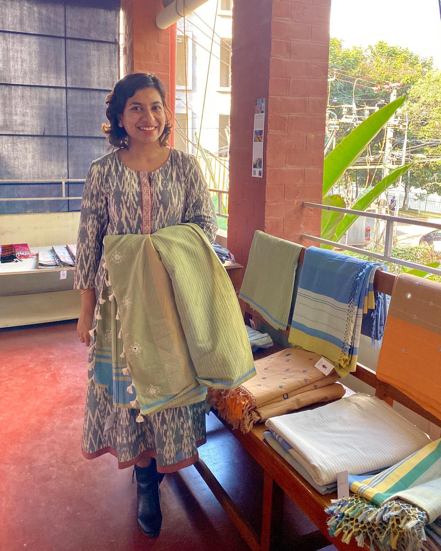わたしがAMBARAに到着したとき、ちょうどデヴィカとは入れ違いだったらしい。VAYATI WEAVESの創始者である若きアントレプレナーのシシーラが2019年に立ち上げたというこのブランド。