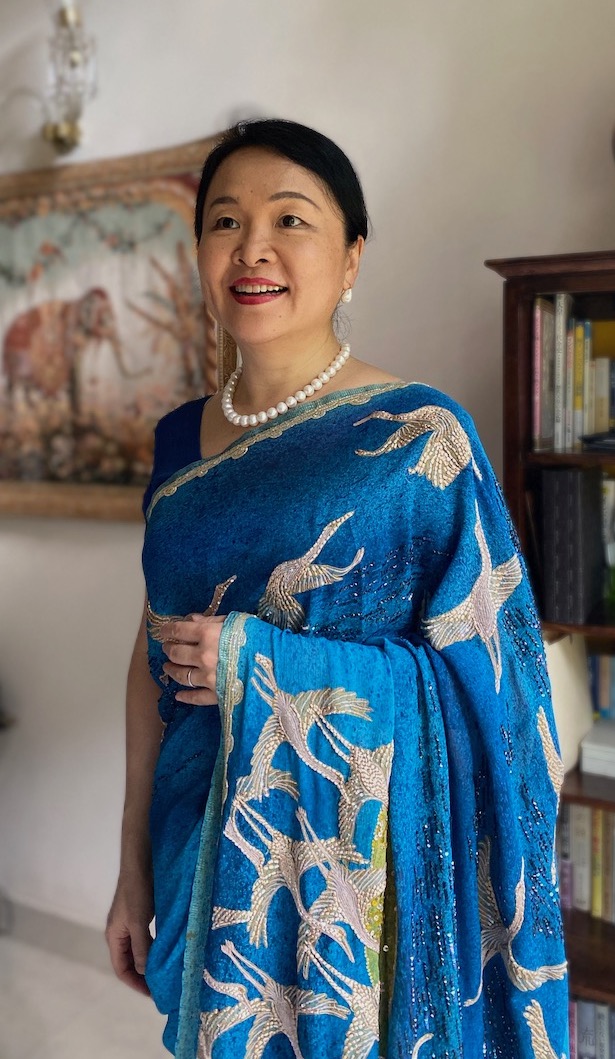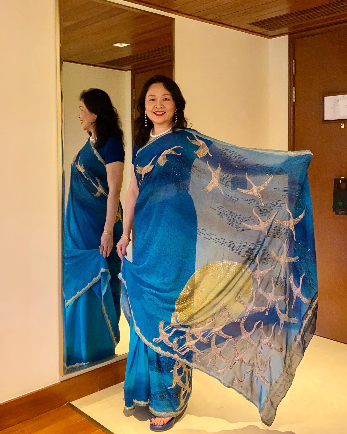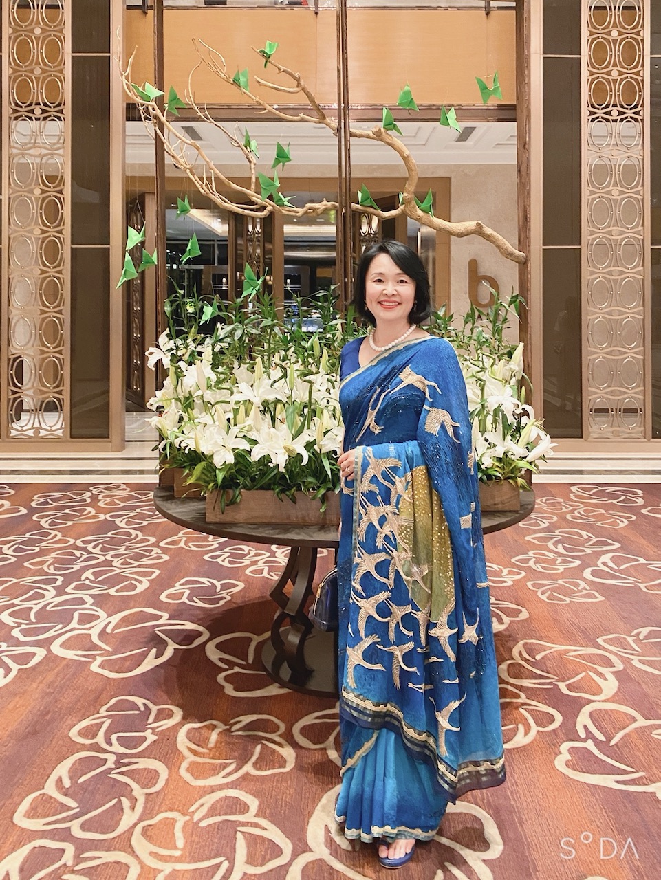 ホテルが、わたしたちの部屋に、誕生日のデコレーションをしてくれた。記念撮影をするために、着用頻度が極めて高い、お気に入りのサリーに着替えた。これは2008年、ムンバイに住んでいた時に買ったものだ。