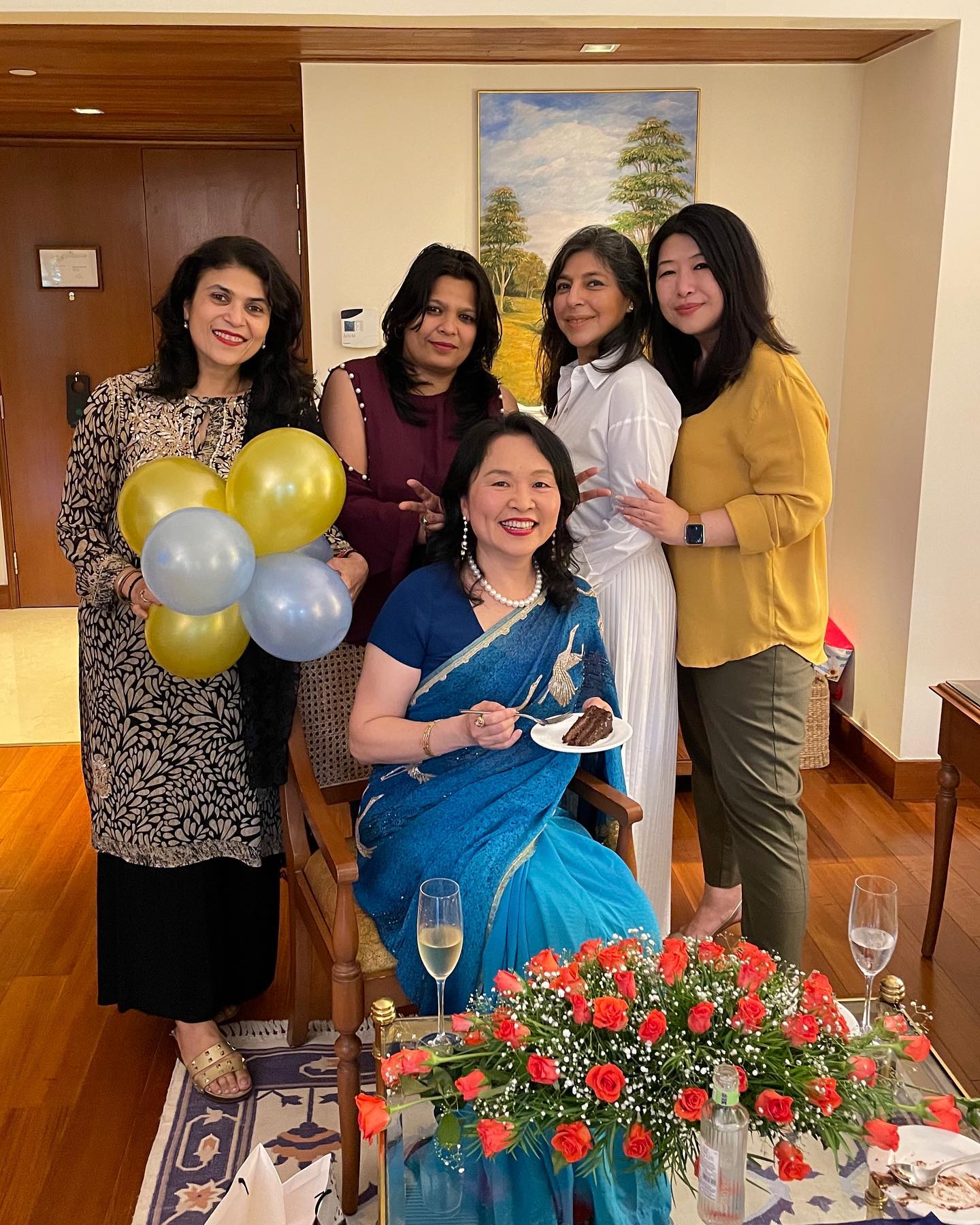 それはさておき、夫がなにかしら、挙動不審。どうしたんだろうと思ったら。……ほどなくして、友人たちが祝福に来てくれた! 本当に予期していなかったから、格別にうれしかった。ありがとう!