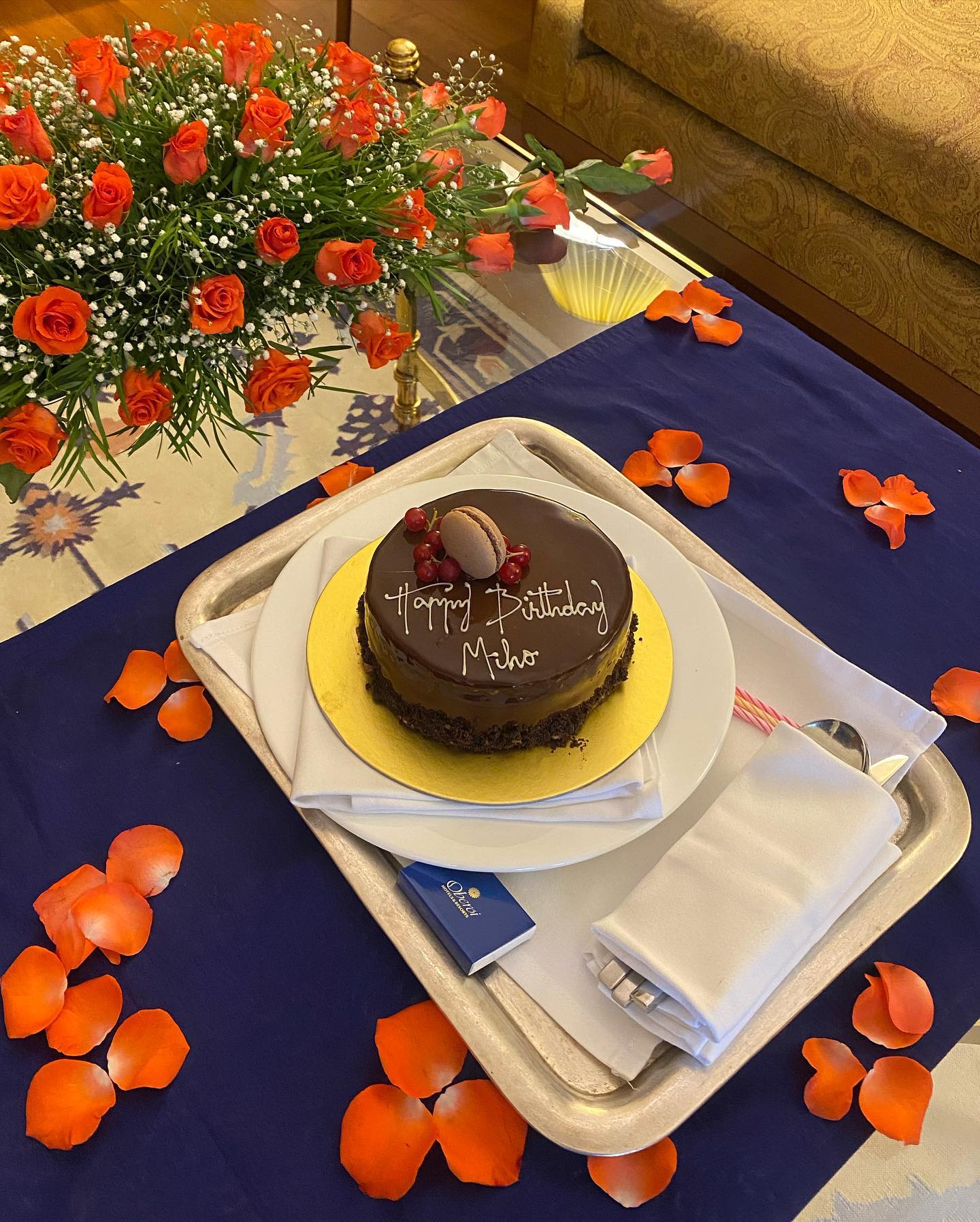 The hotel decorated our room for my birthday. I changed into my favourite saree to take photos. I bought it in 2008 at when we were living in Mumbai.