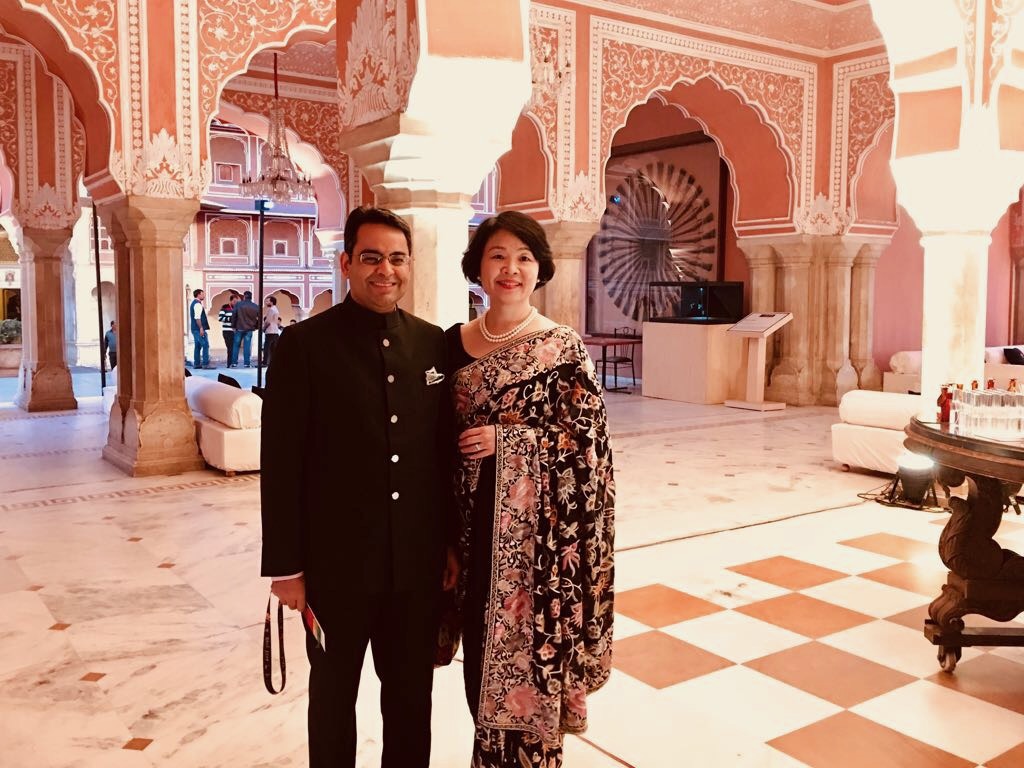 🥻This year, we celebrated our 20th wedding anniversary. In other words, it’s been 20 years since I wore my first saree. Currently, I am sorting through my records of sarees and fashion in India. A lot of memorable photos are coming out. These are photos from 2017, when we visited Jaipur for an event organized by YPO. We were fortunate enough to sit with Maharani Padmini at a dinner at the Palace. I wore a traditional embroidered Parsi (Zoroastrian) saree, one of my favorite pieces, purchased in Mumbai in 2008.