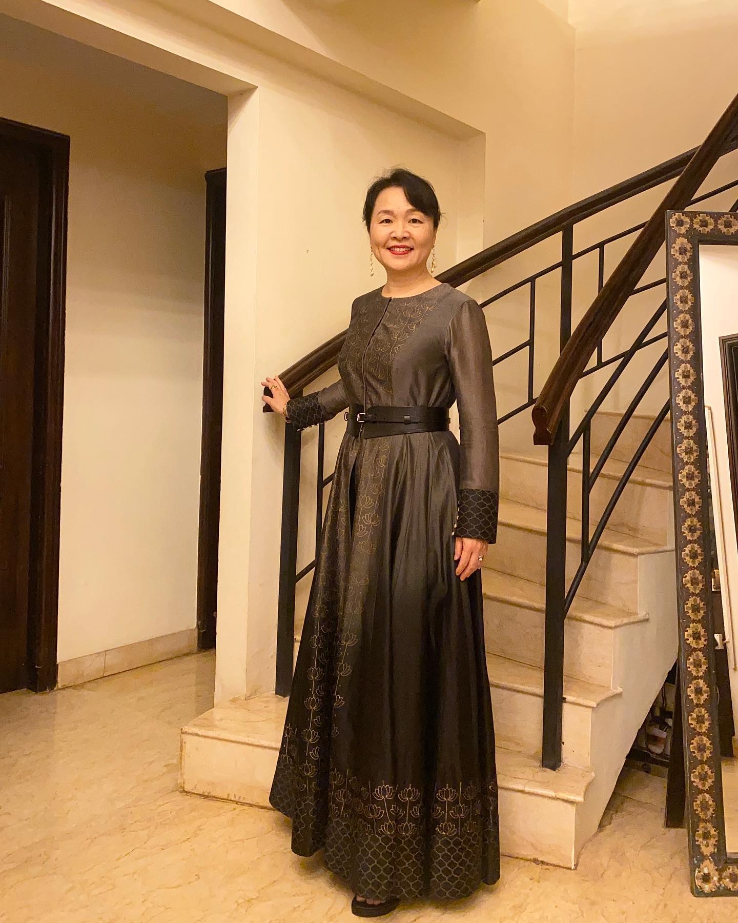 1枚目の写真は昨夜、友人宅で開かれたパーティに着て行ったガウン。”Anarkali dress” とも呼ばれているようだが、普通はガウン、もしくはロングドレスと呼ぶ。2018年にバンガロールのインディラナガールにあるブティックで購入したもの。