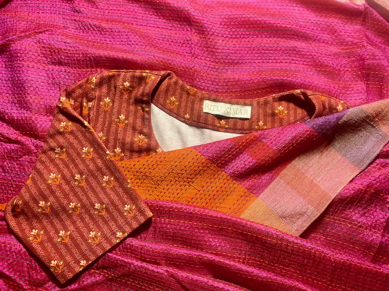 ところで今回着用のサリーは、ベンガル地方のカンタ刺繍が施されたもの。10年以上前にAMBARAで購入した。カンタ刺繍とは、刺し子のような技法で、このサリーは無限運針だ。肌にやさしい、軽くて柔らかなシルク。踊りやすいが、さすがにサリーでガニ股なダンスはなかったな。着崩れているが、せっかく踊ったんで採用。今回はJACK青年がちょくちょく登場している。🐈