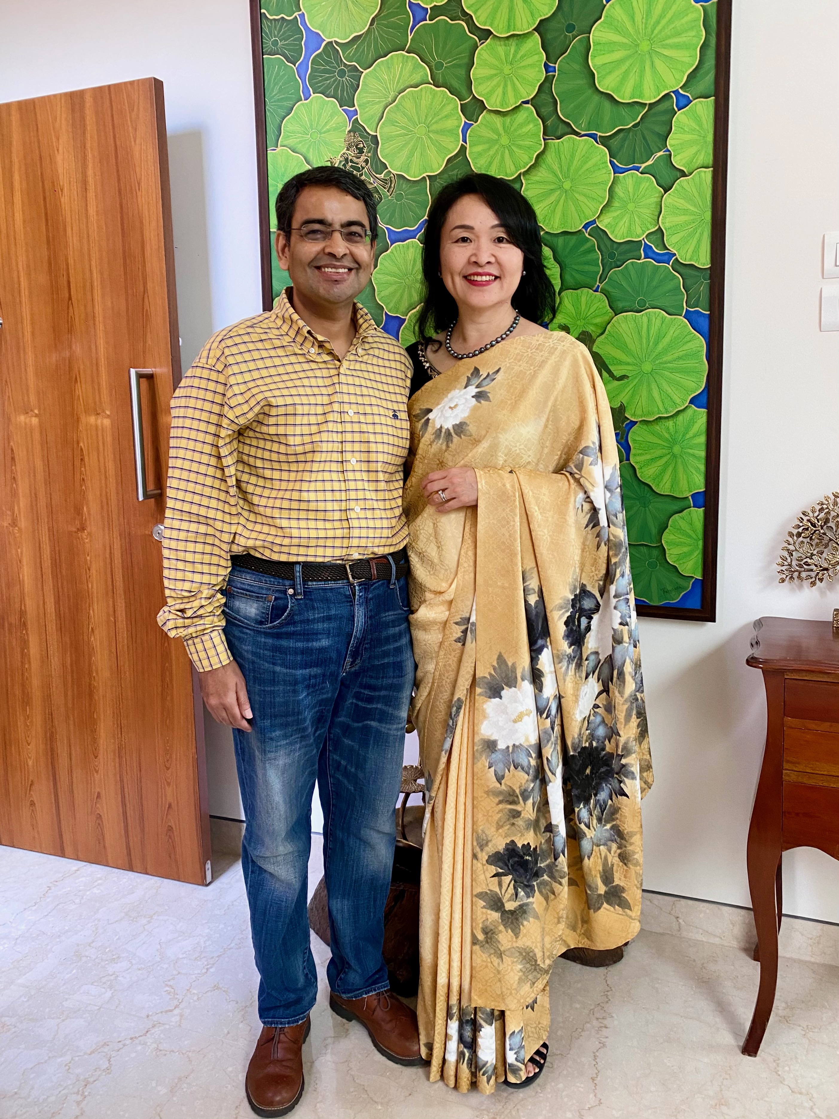 They touched the Kyoto Yuzen Sarees, asked about the creative process and showed great interest in them.