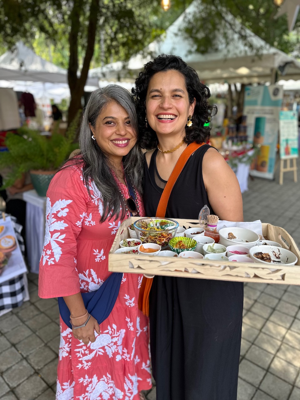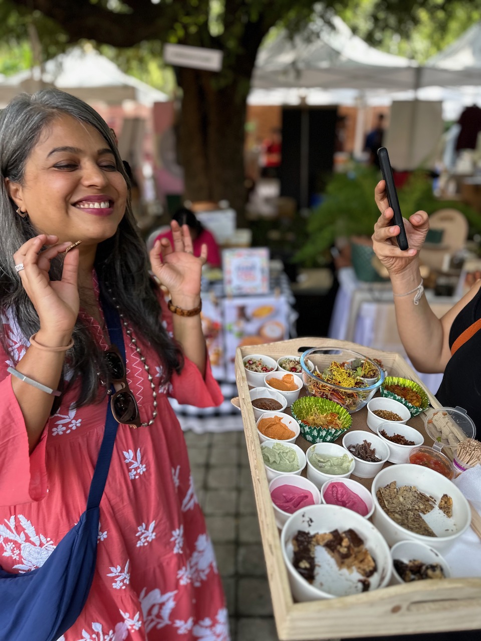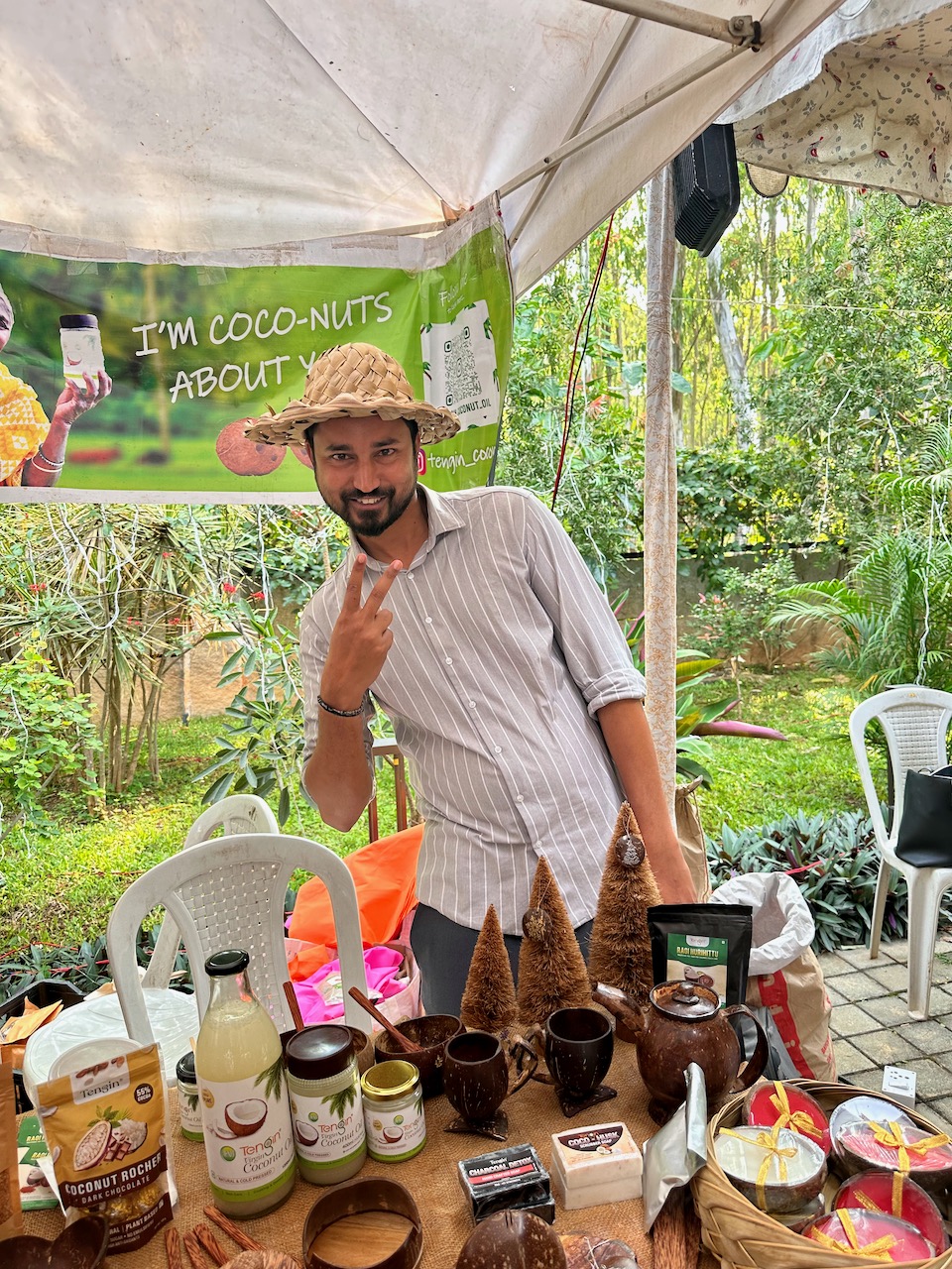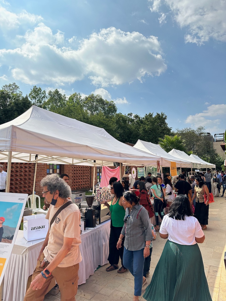 わたしにとって3度目となる今回の開催場所は、新居に程近い北バンガロールのヤラハンカ。先週の曇天とは裏腹に、夢のような青空が広がる今日、夫と二人で赴いた。試食したり、試飲したり、ランチを食べたり、試着したり、肌に塗ったり、香ってみたり……。