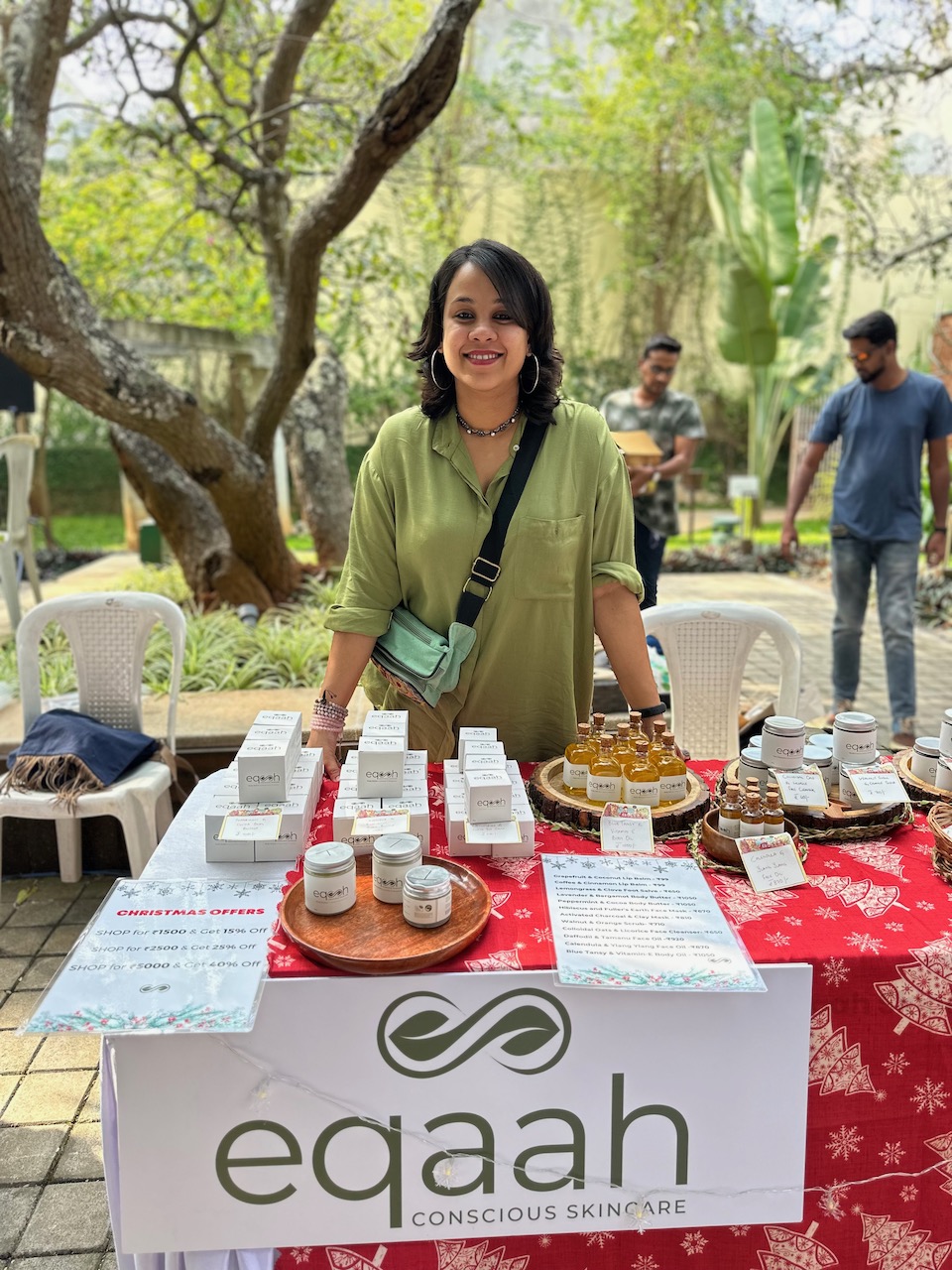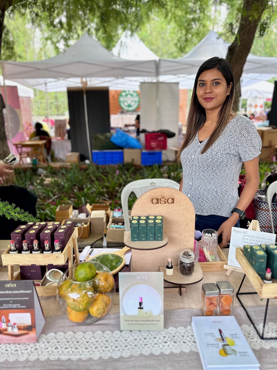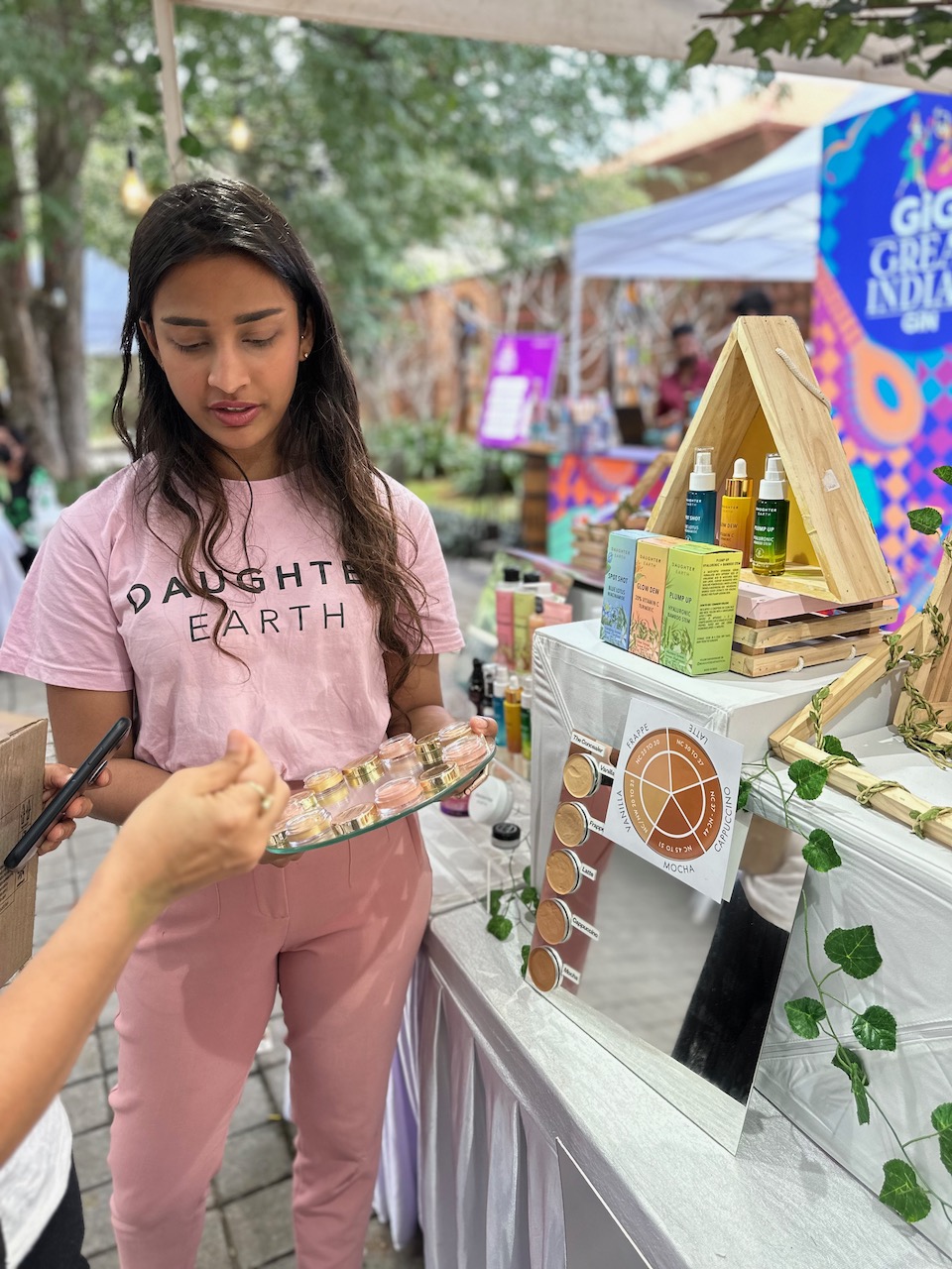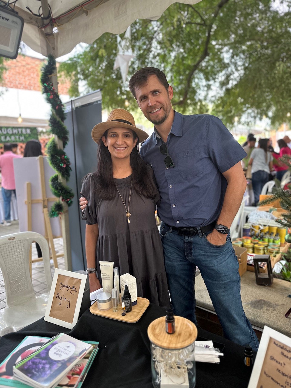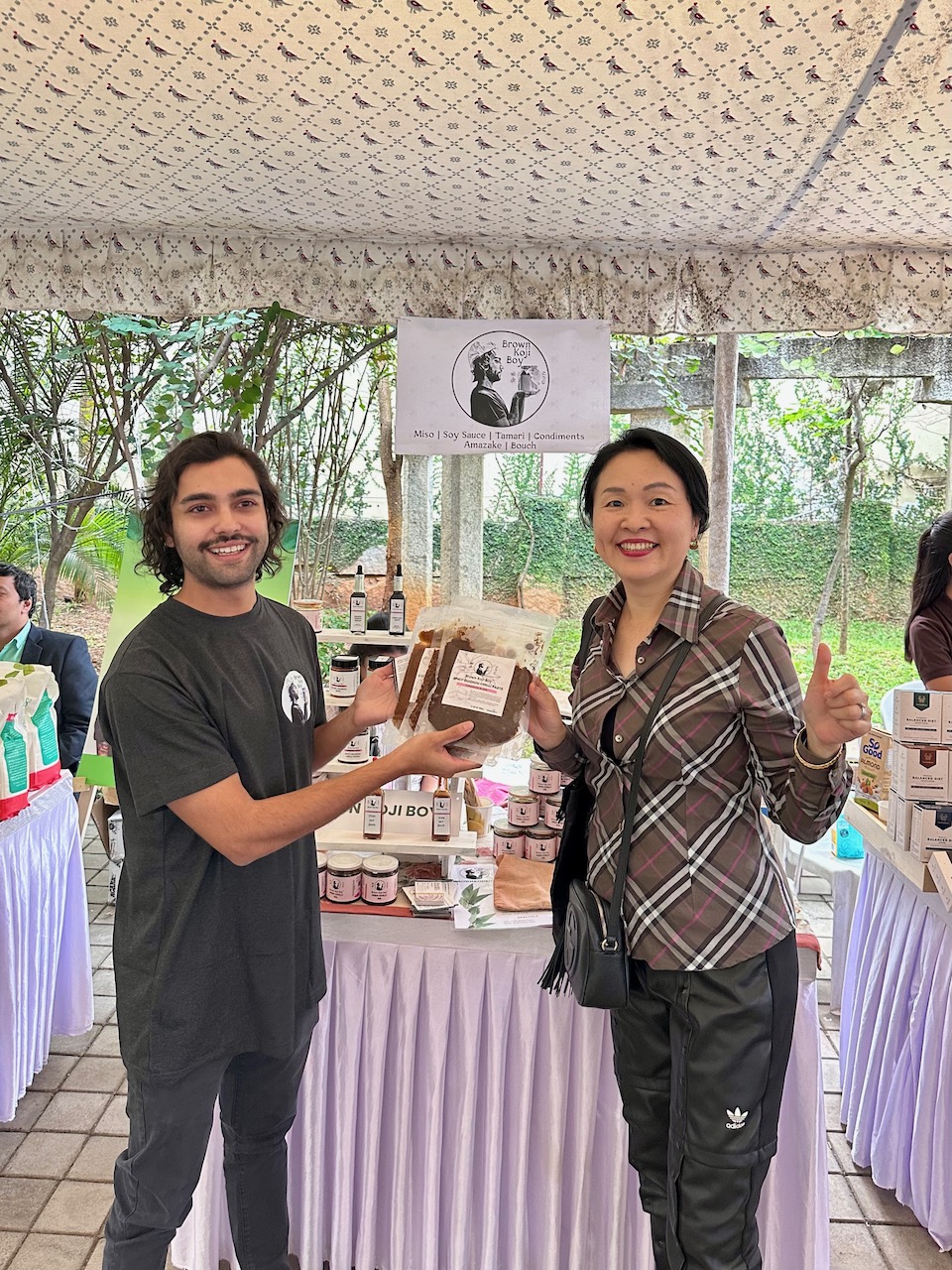 わたしにとって3度目となる今回の開催場所は、新居に程近い北バンガロールのヤラハンカ。先週の曇天とは裏腹に、夢のような青空が広がる今日、夫と二人で赴いた。試食したり、試飲したり、ランチを食べたり、試着したり、肌に塗ったり、香ってみたり……。