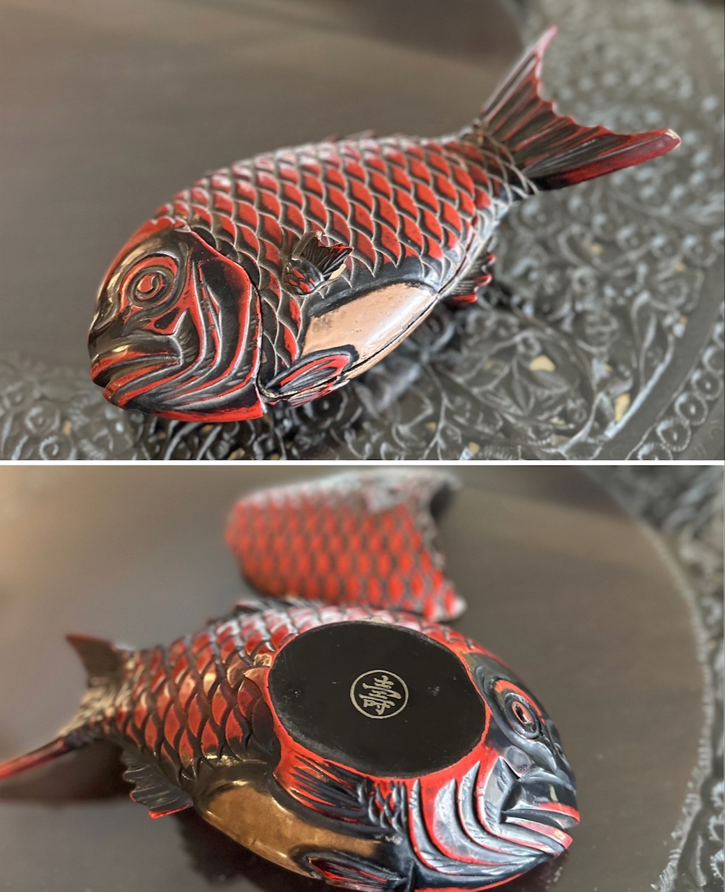 夫が子供のころ、好きだったという鯛の小物入れ。壽。