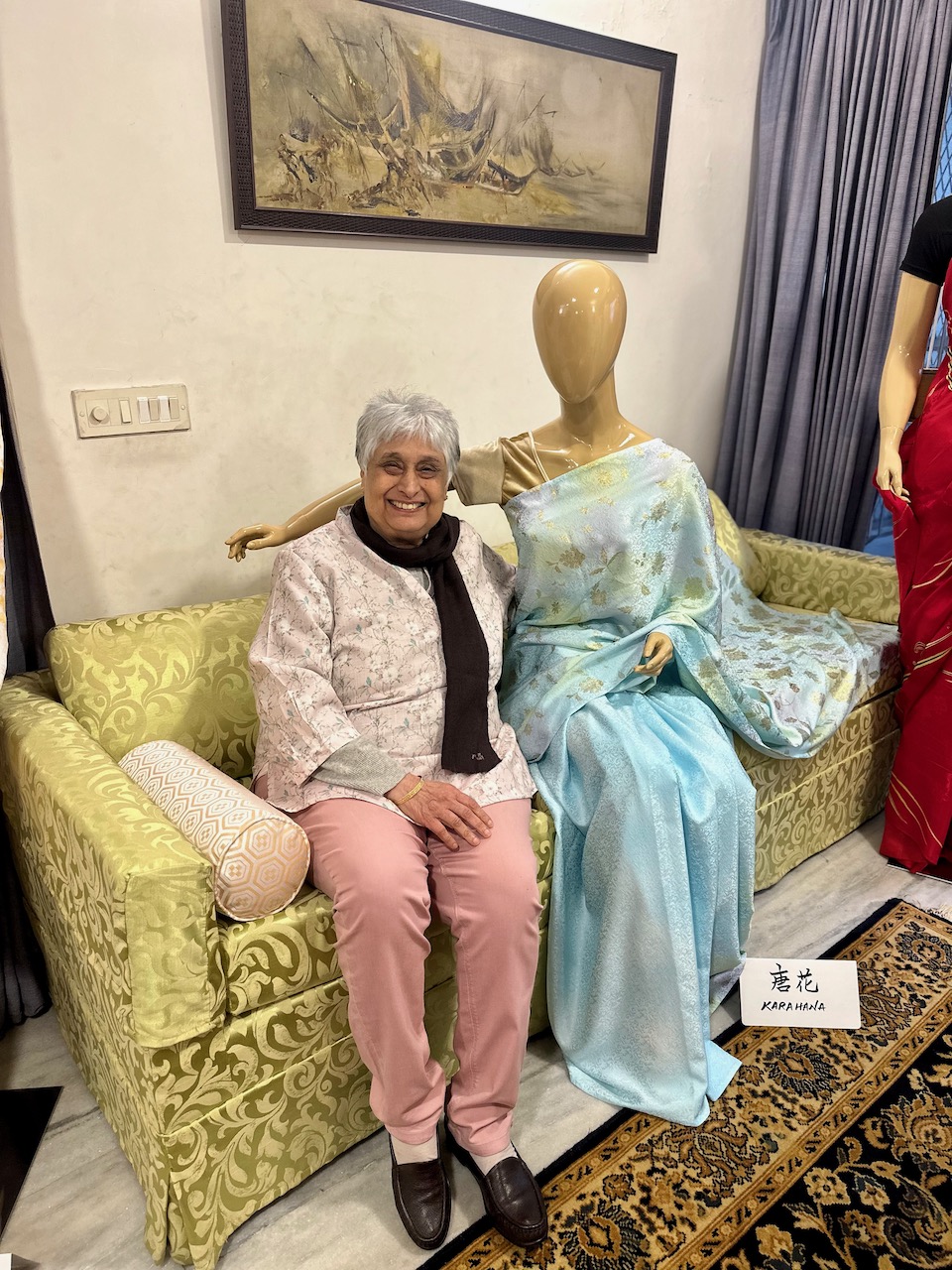 淀んでいた空が嘘のように、今日のデリーは青空だ。13日、14日と、2日間に亘って実施した京友禅サリーの展示会。50名を超える来訪者を迎え、想像以上に賑やかで豊かな時間が流れた。
