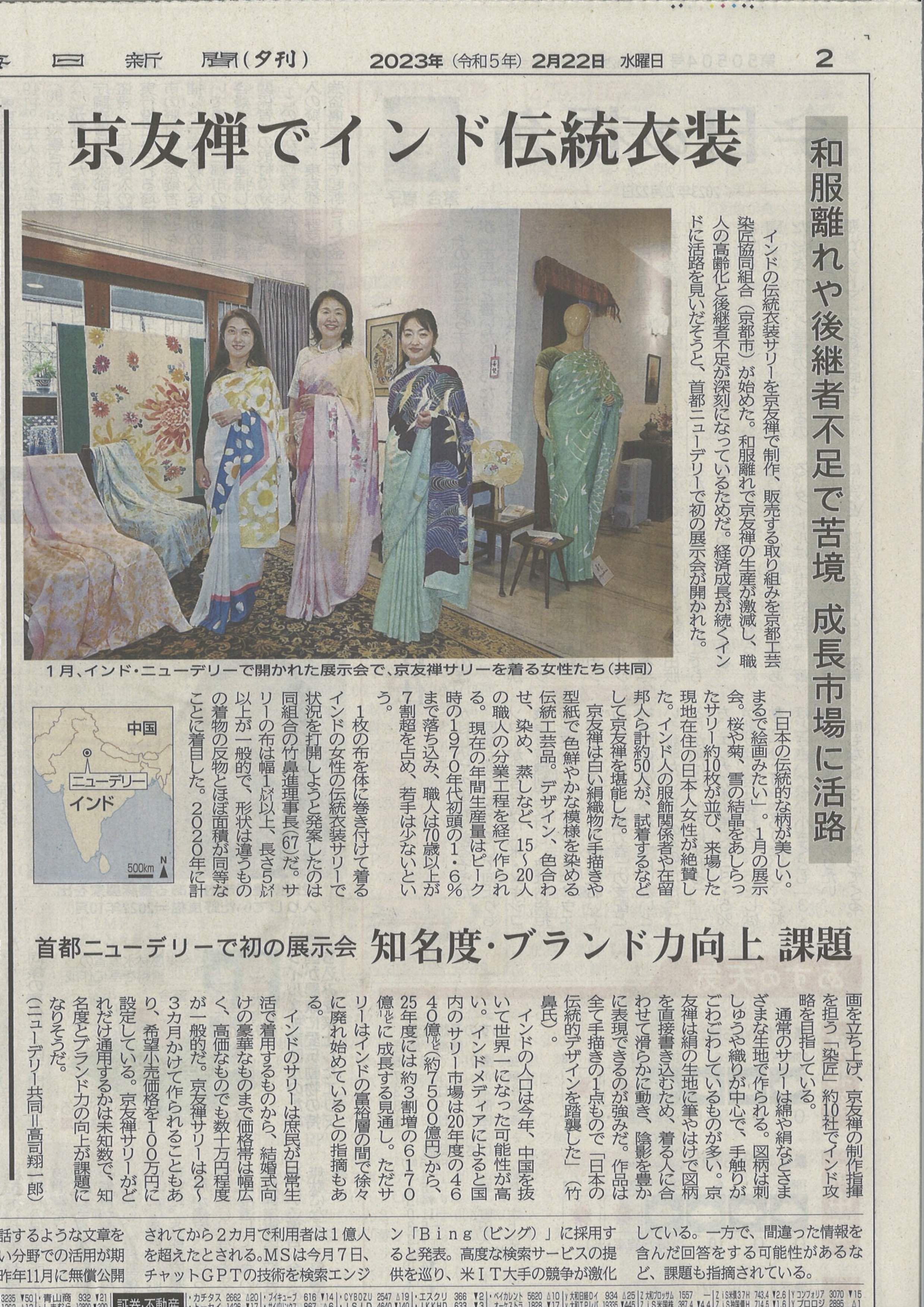 この取材をし、記事を執筆してくださった共同通信の高司氏。わたしと故郷が同じ福岡市東区で、ご実家は徒歩圏内だった! というご縁があり、その後、バンガロールでもお会いしたのだった。京友禅サリーとはほぼ、全く関係ないが、その話題も以下の記録に残している。