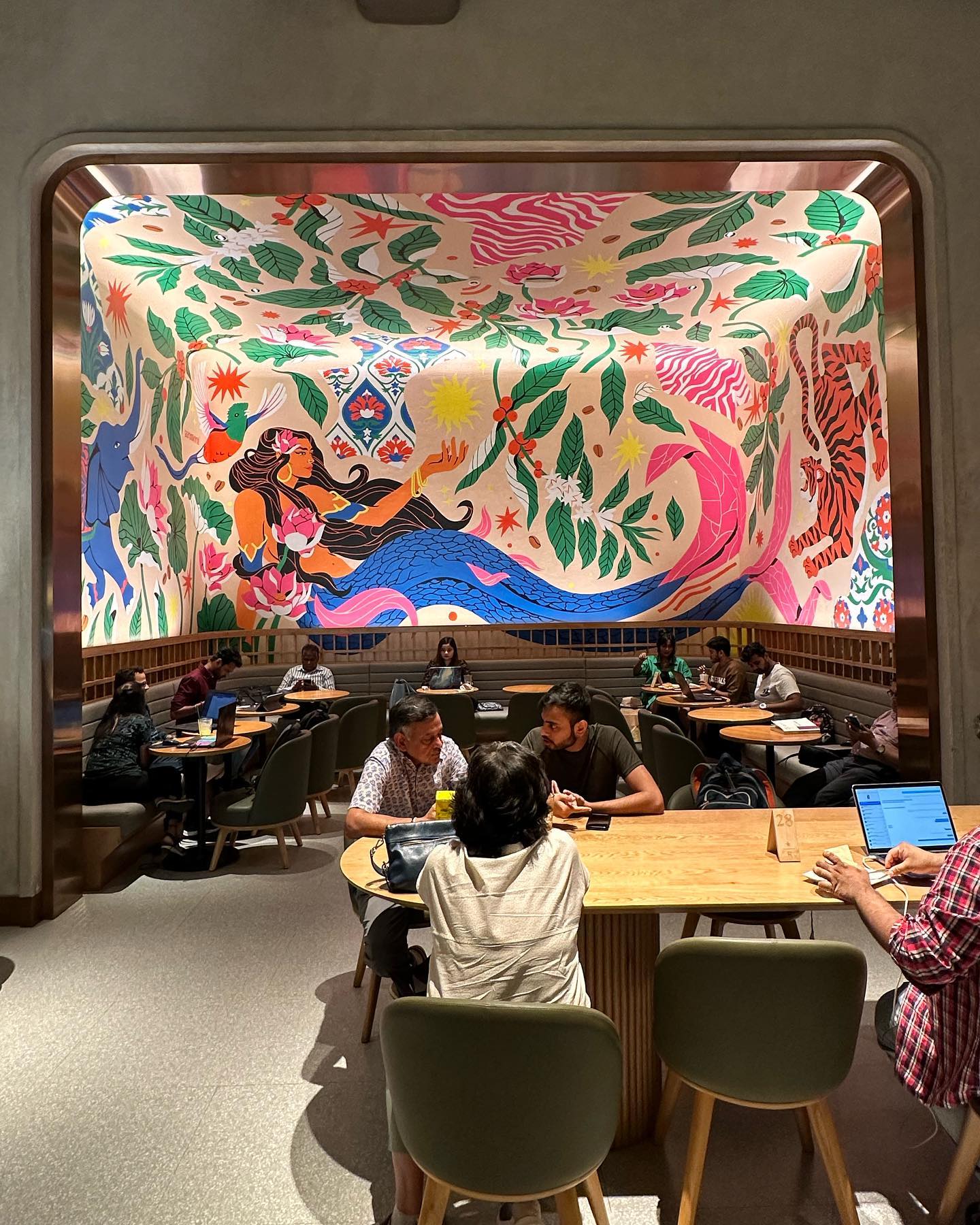 2012年、インド第一号店として開業したこのスターバックス。久しぶりに訪れれば、内装は以前からは一新している。個人的には、昔ながらのインド風情が生かされた雰囲気が好きだが、このポップに明るい感じもまた、悪くない。