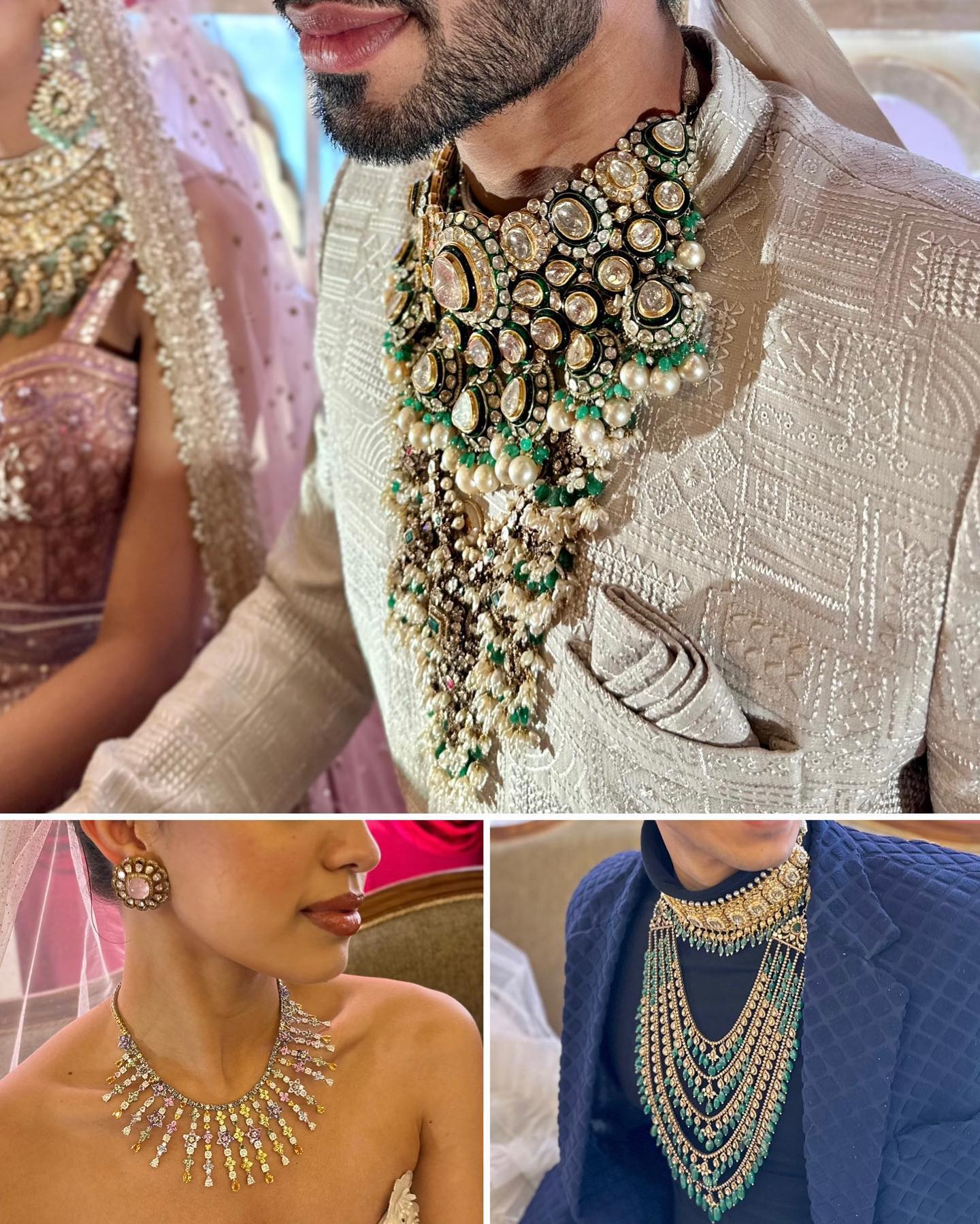 なお、インドでは古くからカットされていない粗削りの「ラフ・ダイヤモンド (Rough Diamond)」を、目いっぱい施したジュエリーも一般的。写真のモデルたちが身につけているガラスっぽい石は、すべて「ラフ・ダイヤモンド」だ。