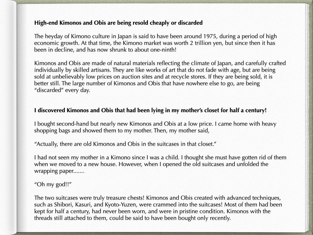 ◉一時帰国の日本で呉服店を訪れ、着物の美しさに開眼