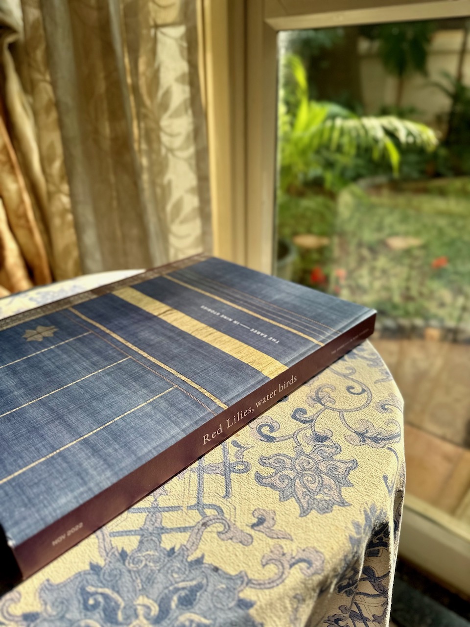 この絞りのデザインが、今から1400年以上前に描かれたアジャンタの仏教遺跡にある壁画と酷似していることに気づいたとき、わたしは深く感じ入った。