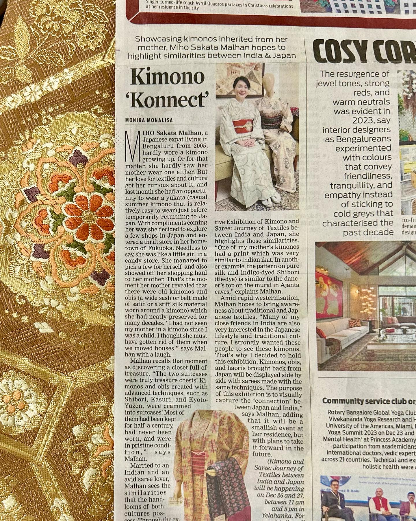 その後、New Indian Express紙のジャーナリストであるMonikaが来訪。ファッションやテキスタイル関連にも関心があるという彼女は、先日の展示会の様子を、来訪者複数名のInstagramの投稿で知り、連絡をくれた。彼女には、ここでもシェアした展示会開催の背景を記した資料や写真などを送り、電話で10分ほど、話をした。