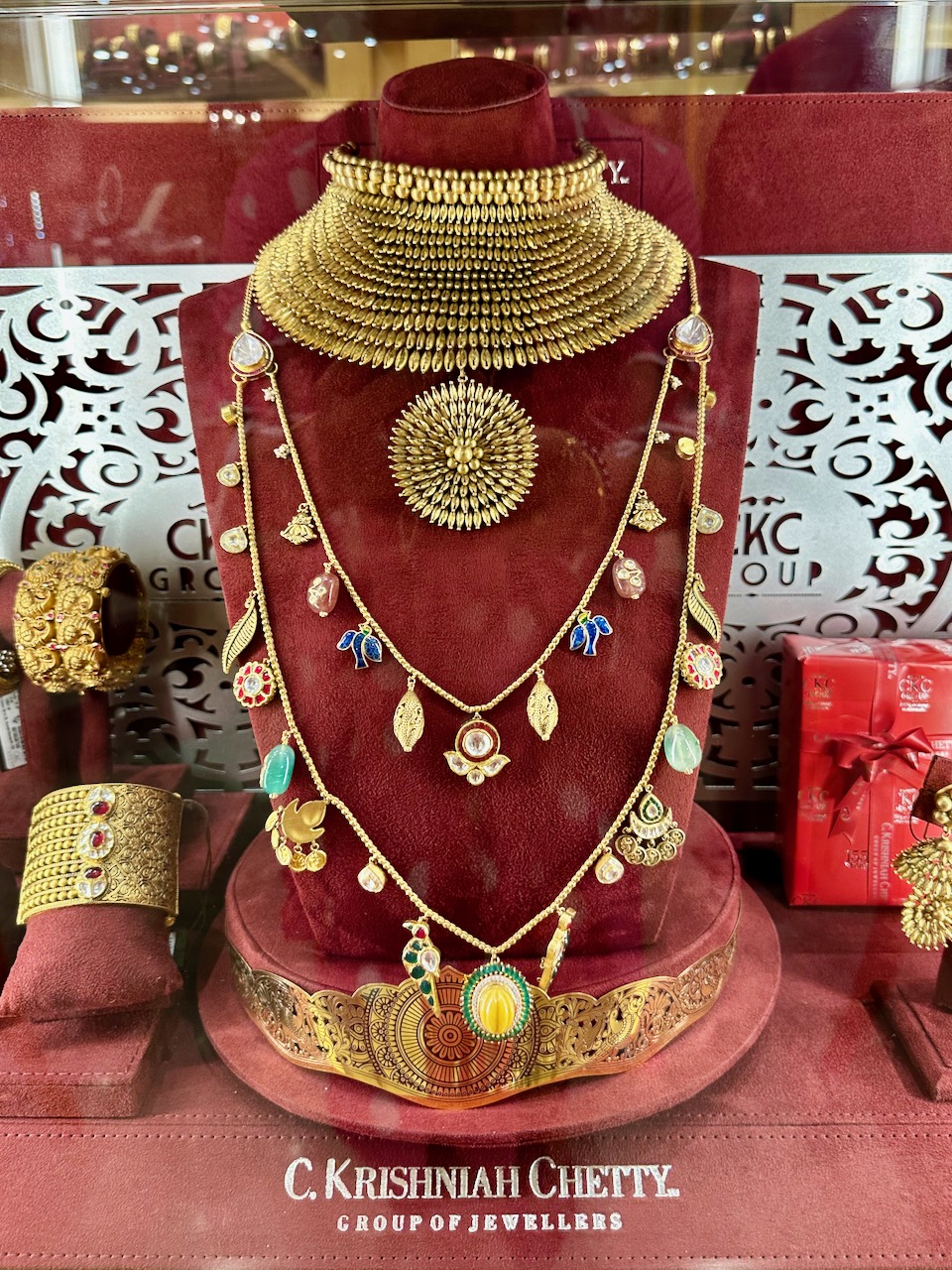 店が2代目に継承されると、ビジネスの範囲は更に拡大。ハイデラバード王国のニザム(藩王)やマイソール王国のマハラジャをはじめ、主に南インドの多くの藩王国が、同店を御用達にしていたという。ジュエリーだけではなく、銀製の置物や食器など、大小様々な贈答品なども作られた。ミュージアムでは、その中の一部やレプリカなどが展示されており、ジュエリーの歴史を通して、当時の社会の様子を学ぶことができた。