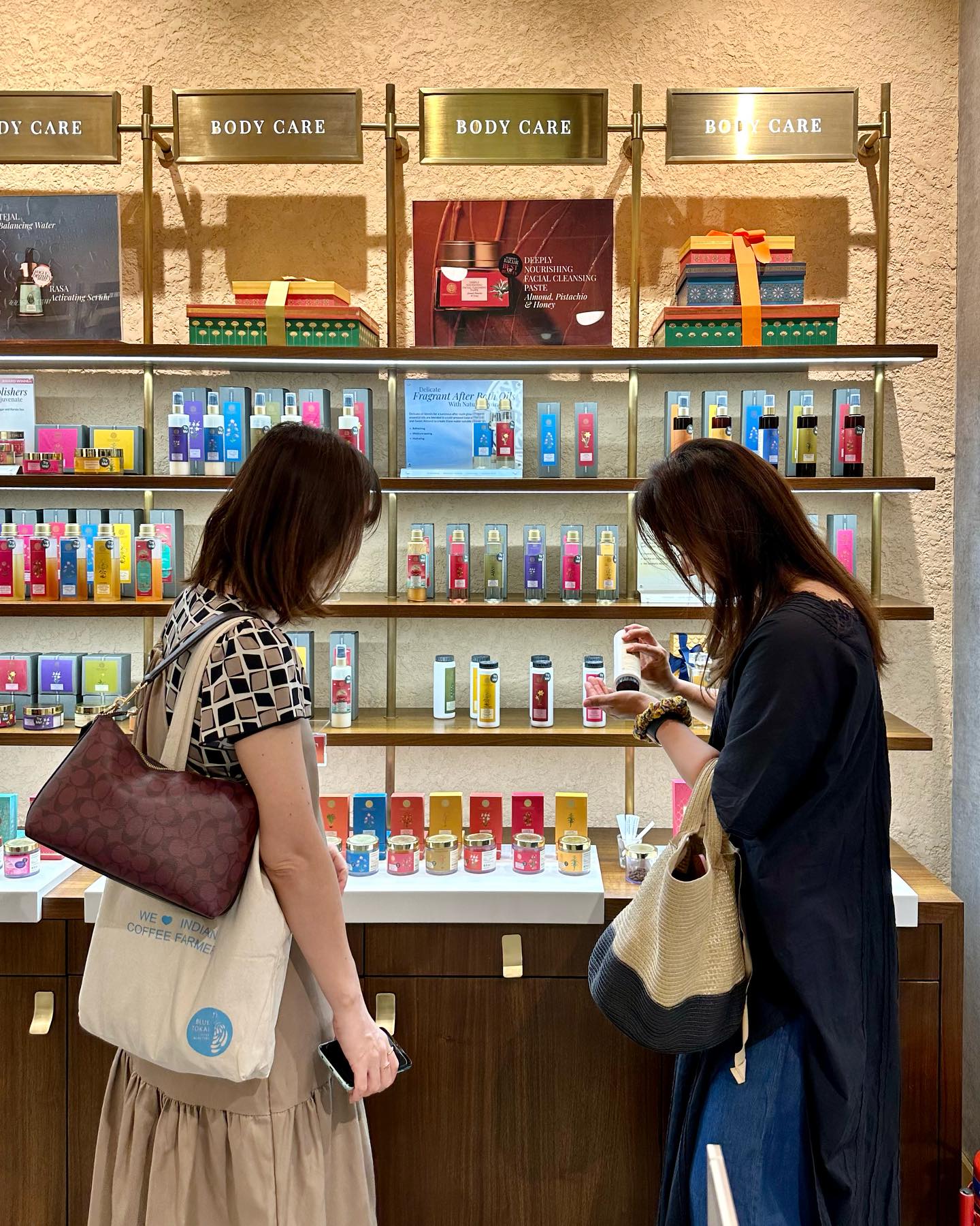 店舗巡りは、フロアごとに攻めていく流れに。ファッション、コスメティクス、ジュエリー……と、あらゆるジャンルの店が並ぶ中、特筆すべき店のバックグラウンドや特徴を次々に紹介、お勧めのブランドは店内に入り、商品など具体的に説明する。今回は、途中で自由解散としていたので、子どもたちは早い段階で離脱かな……と思いきや、10歳のお嬢さんが好奇心旺盛で、スーパーマーケットでもコスメティクスのショップでも、なかなかに的確なコメントを発していた。大人もさることながら、子どもたちが偏見なく審美眼を養っている様子を見るのは、非常にうれしいものだ。
