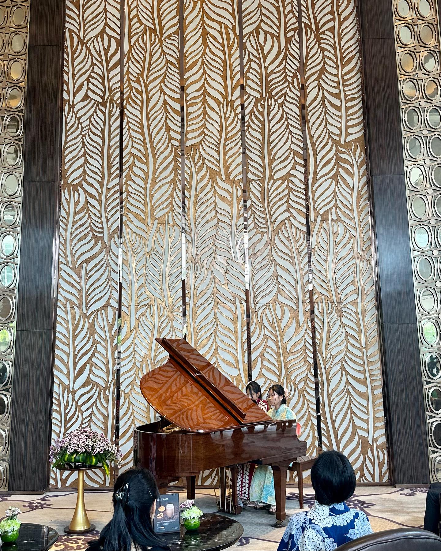 シャングリ・ラ・ホテルのロビーフロアは、明るく広々と、開放感があってよい。その一隅にあるラウンジのピアノを、巧みに奏でる少女たち。急に出演が決まったとは思えない堂々たる演奏だ。