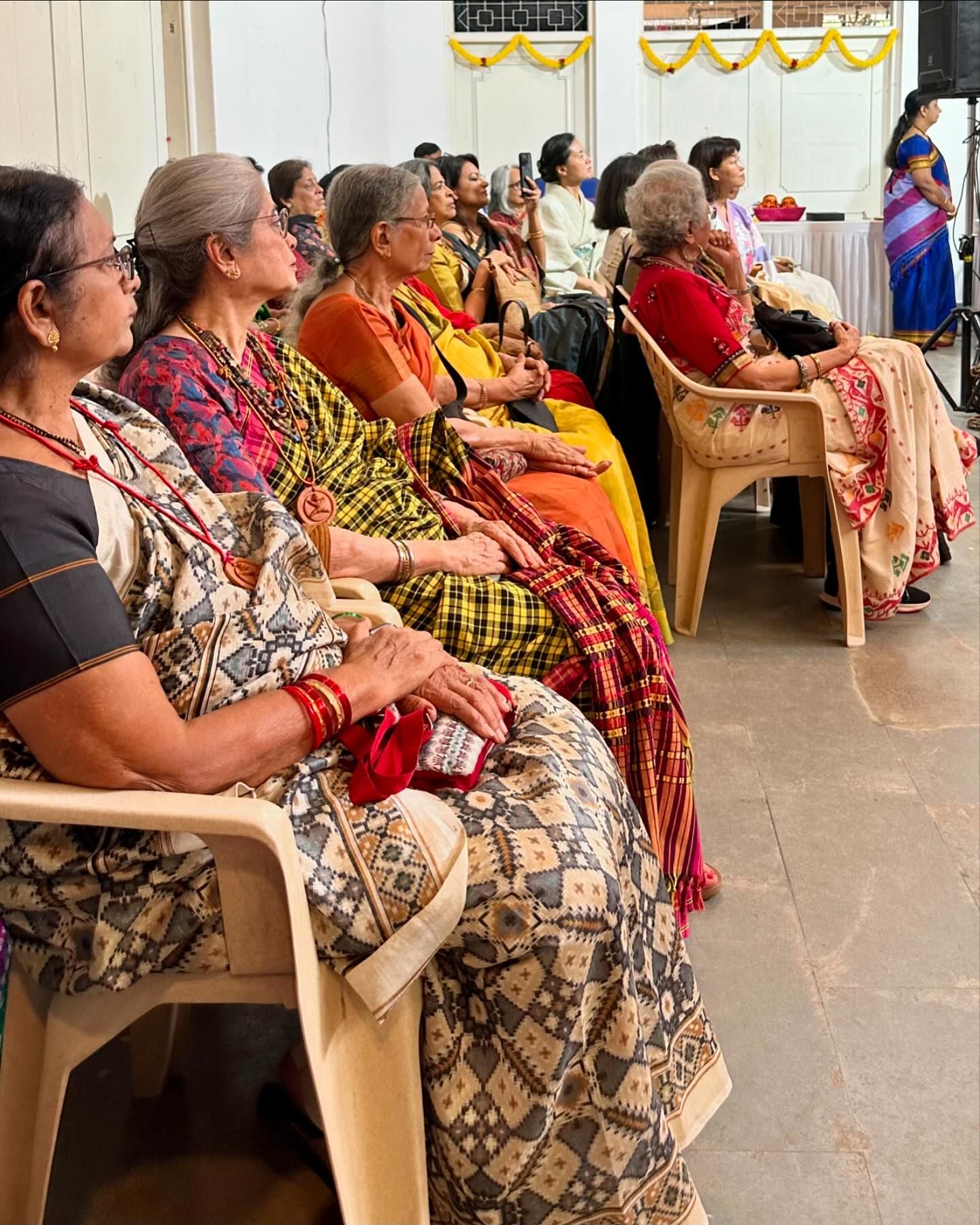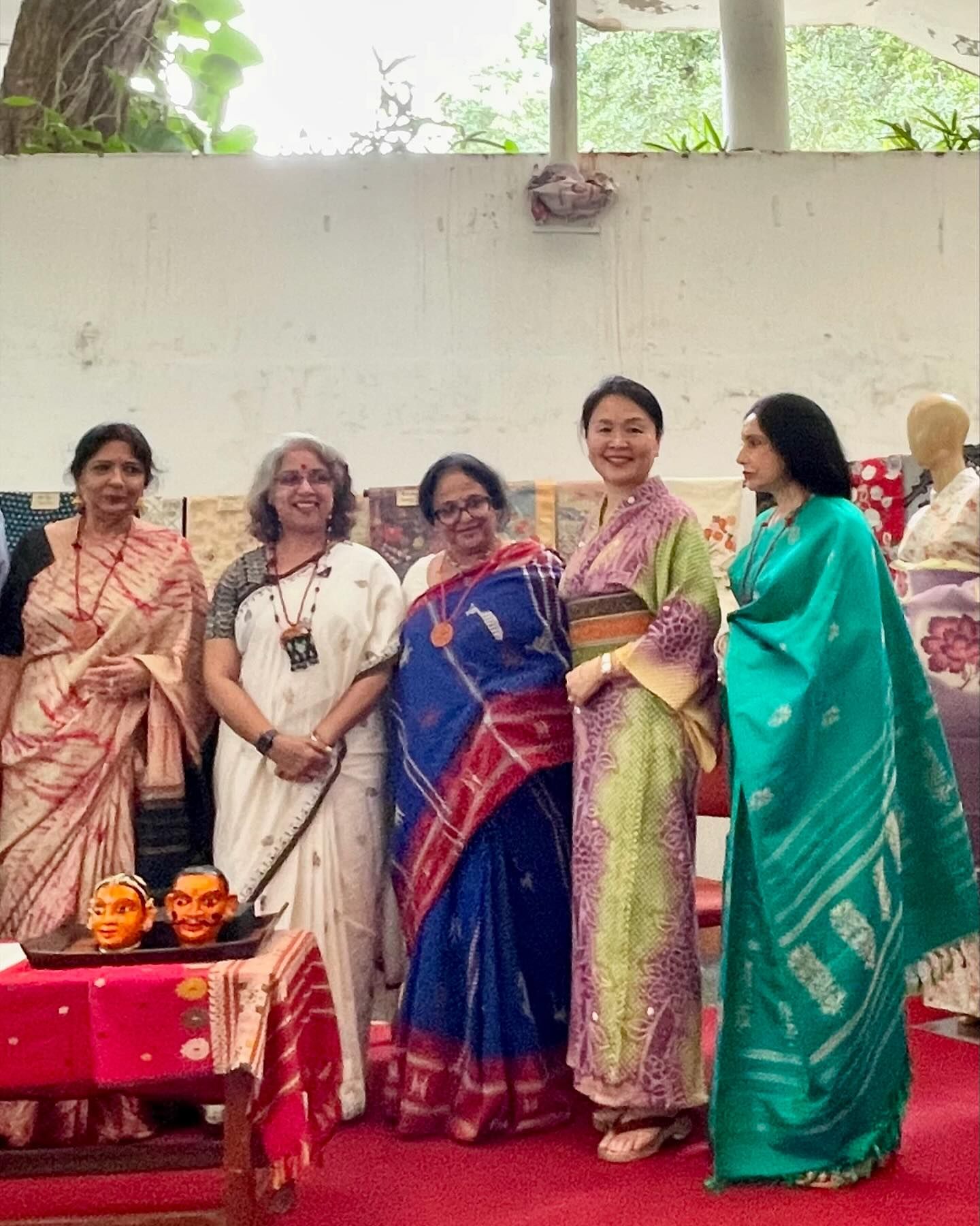 I actively bought sarees during my first few years living in India. Orissa Ikat, Patola Ikat, Bandhani, Varanasi Silk, Parsi Gara, Chikankari, Bhandani, Kutch, Kashmiri, Kantha embroidery, Ajrakh Print, Mysore Silk, Dhaka Muslin, Kalamkari……. Each saree is very dear to me. In fact, I sometimes felt a bit uncomfortable at parties hosted by my Indian friends as I was often the only one wearing a saree. I decided to create opportunities for my friends to wear sarees. Since I founded the NGO, Muse Creation in 2012, I have been giving talks every few months on Indian sarees and textiles to Japanese people living in Bangalore. I have also led Japanese women to visit saree shops and exhibitions. I organised lunch meetings in sarees. It was great fun to see more than ten Japanese women gather in their sarees.