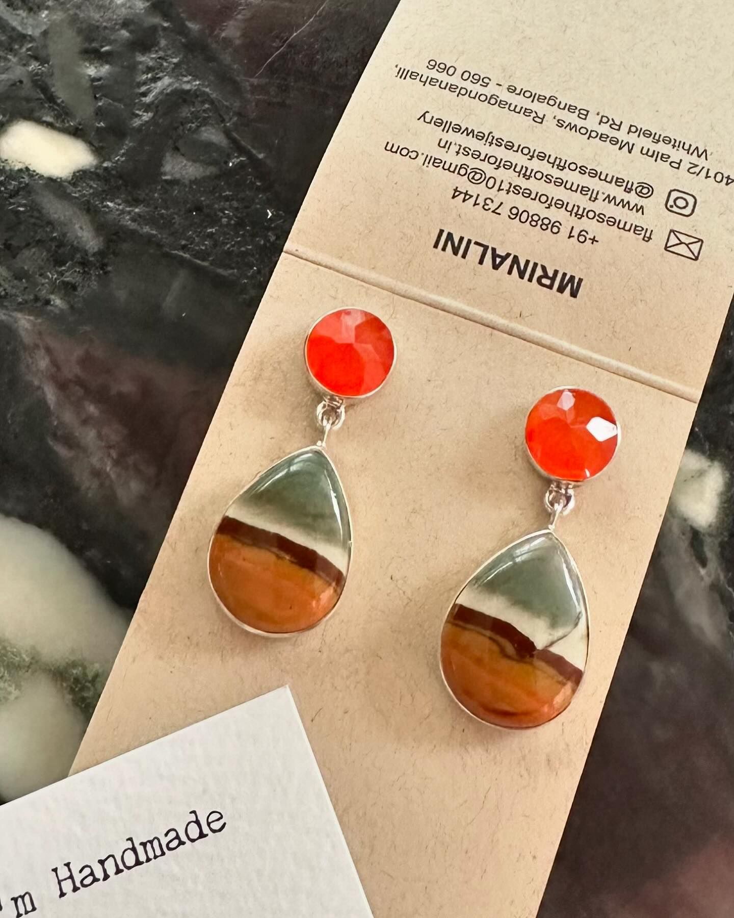 布以外に、2店舗、とても素敵なジュエリーブランドが出店していた。Flames of the Forestは、天然石をモチーフにしたシルヴァージュエリーを販売。かようなジュエリーは、インドではとても一般的だが、洗練されたデザインというのは、なかなか見つからないものだ。Flames of the Forestはデザイナー自らが積極的に接客。それぞれの石とデザインにストーリーがあり、魅力的である。わたしは、カーネリアンとジャスパーのイヤリングを買った。鮮やかなオレンジと、曇天の砂漠の地平線みたいな石の模様が気に入った。