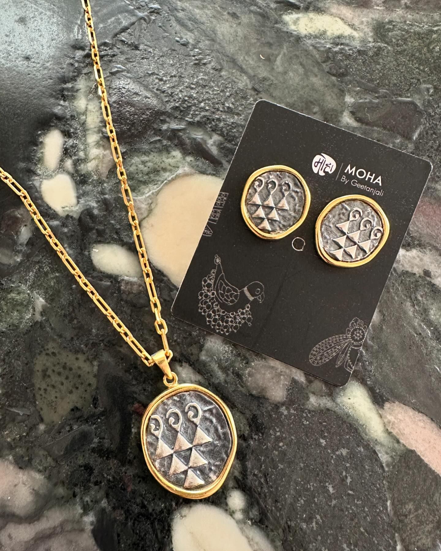 MOHAは、インドの神様ほか、縁起良さげなモチーフをデザインしたジュエリーを展示。わたしはサラスワティという女神(日本の弁財天の起源)が好きなのだが、今回、このモチーフが、サラスワティのシンボルだと知り、うれしくなって購入した。シルヴァーにゴールドをコーティングしたものなので、お値段も手頃だ。