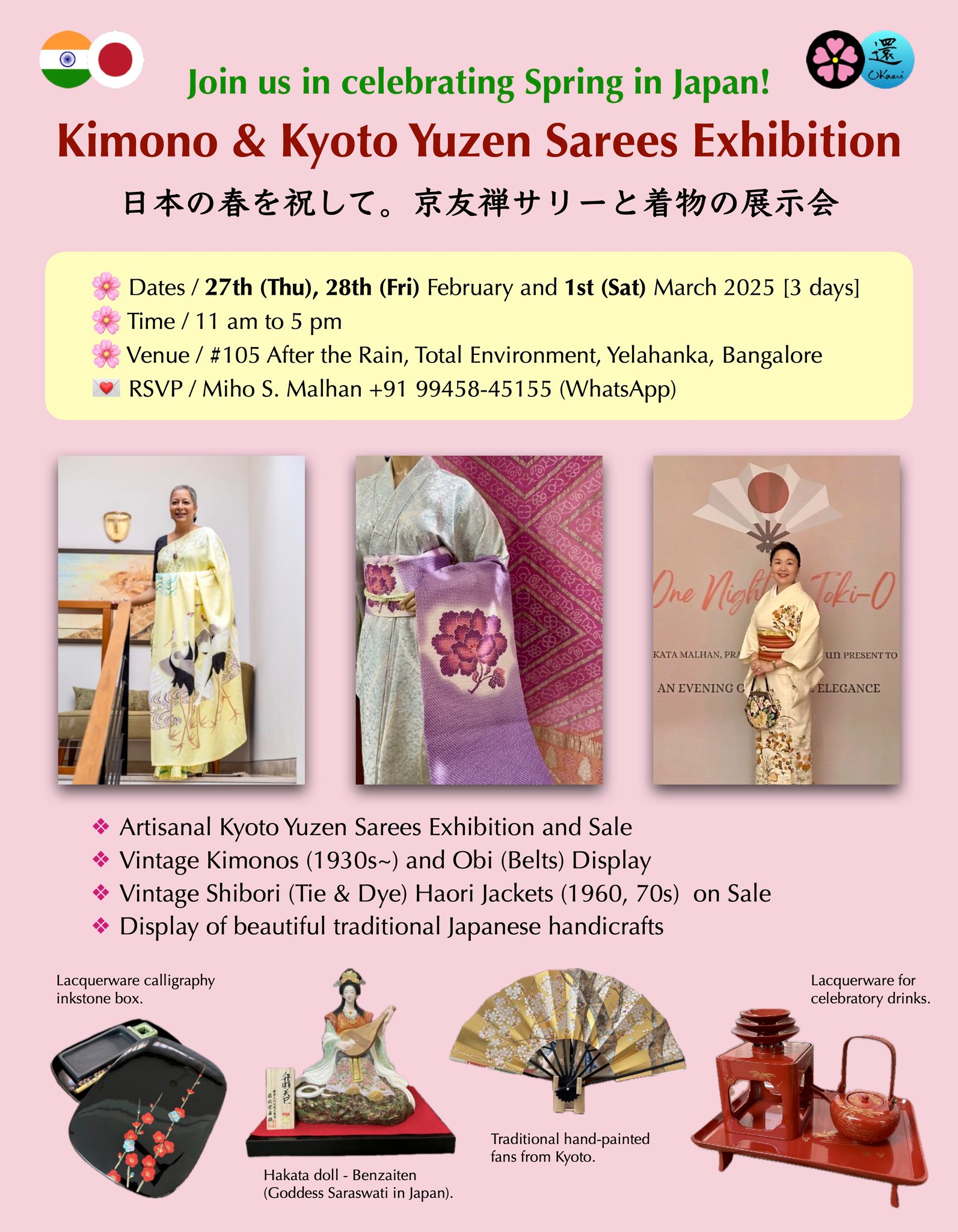 この2年間、京友禅サリーや着物の展示会を何度となく開催してきた。場所もコンセプトも、それぞれが、似て非なる。ブランド・アンバサダーとしてお手伝いをしている京友禅サリーにせよ、個人的に1年半前に目覚めた日本のヴィンテージ着物にせよ、1枚1枚に物語がある。