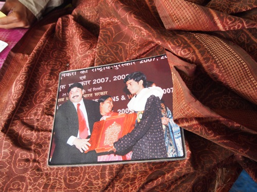 さて、サリー着付け教室をやるだけあり、もちろんサリー着用だ。これは、以前工芸品フェアで、職人から直接購入したヴェナレスのバラナシ・シルク。
