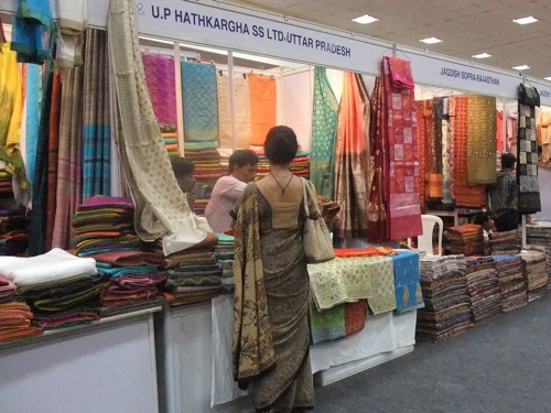 このような展示会を訪れる人は、サリーの着用率も高く、全体的にコンサヴァティヴなムードが漂っています。