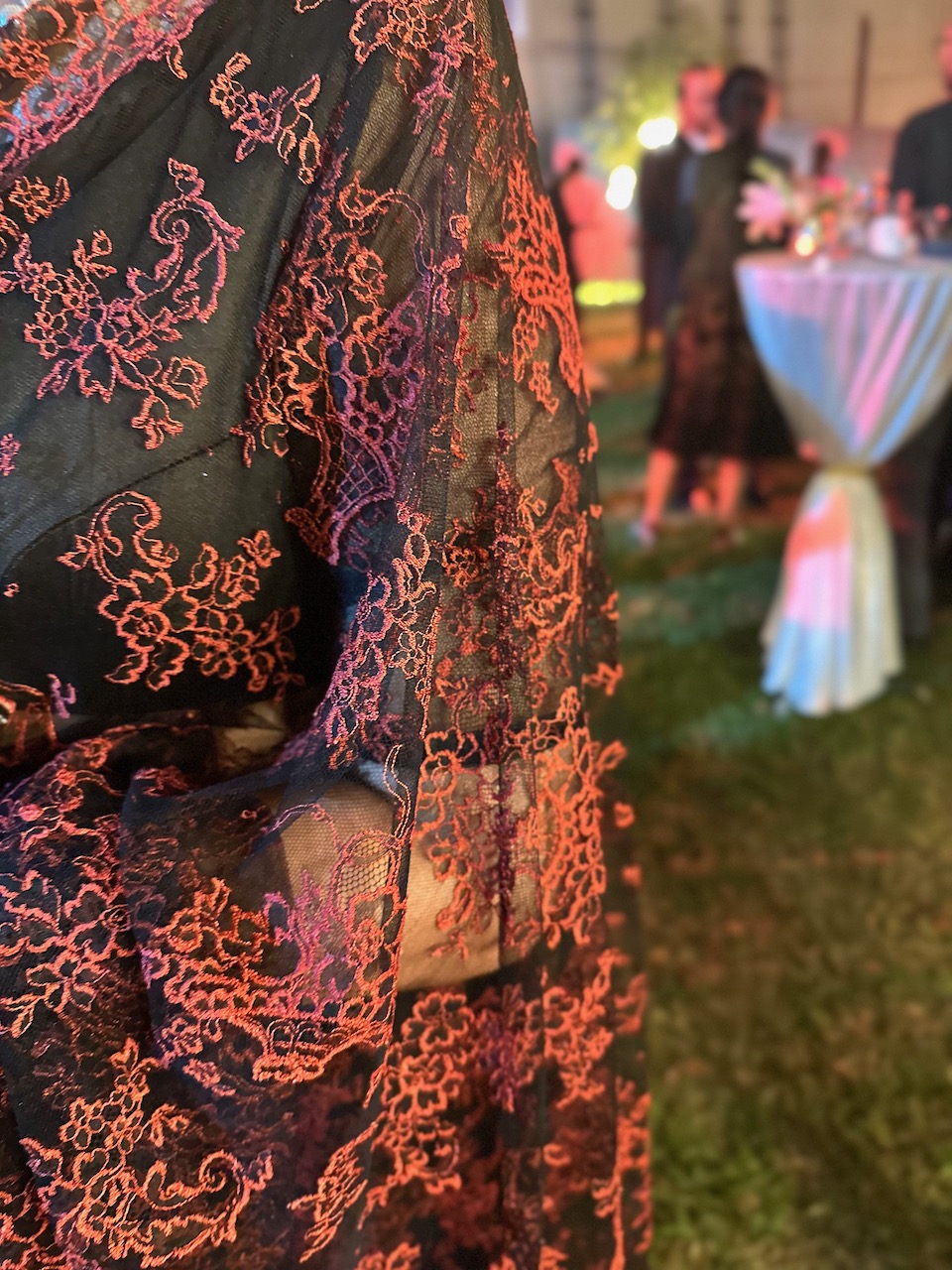 ちなみにこれは、Chantilly lace と呼ばれるフランスのボビンレースを起源とするようだ。レースのサリーもまた、エレガントで本当にすてきだ。軽くて着心地もよさそうだ。いやはや、一枚布サリーの世界もまた奥が深くて尽きない。